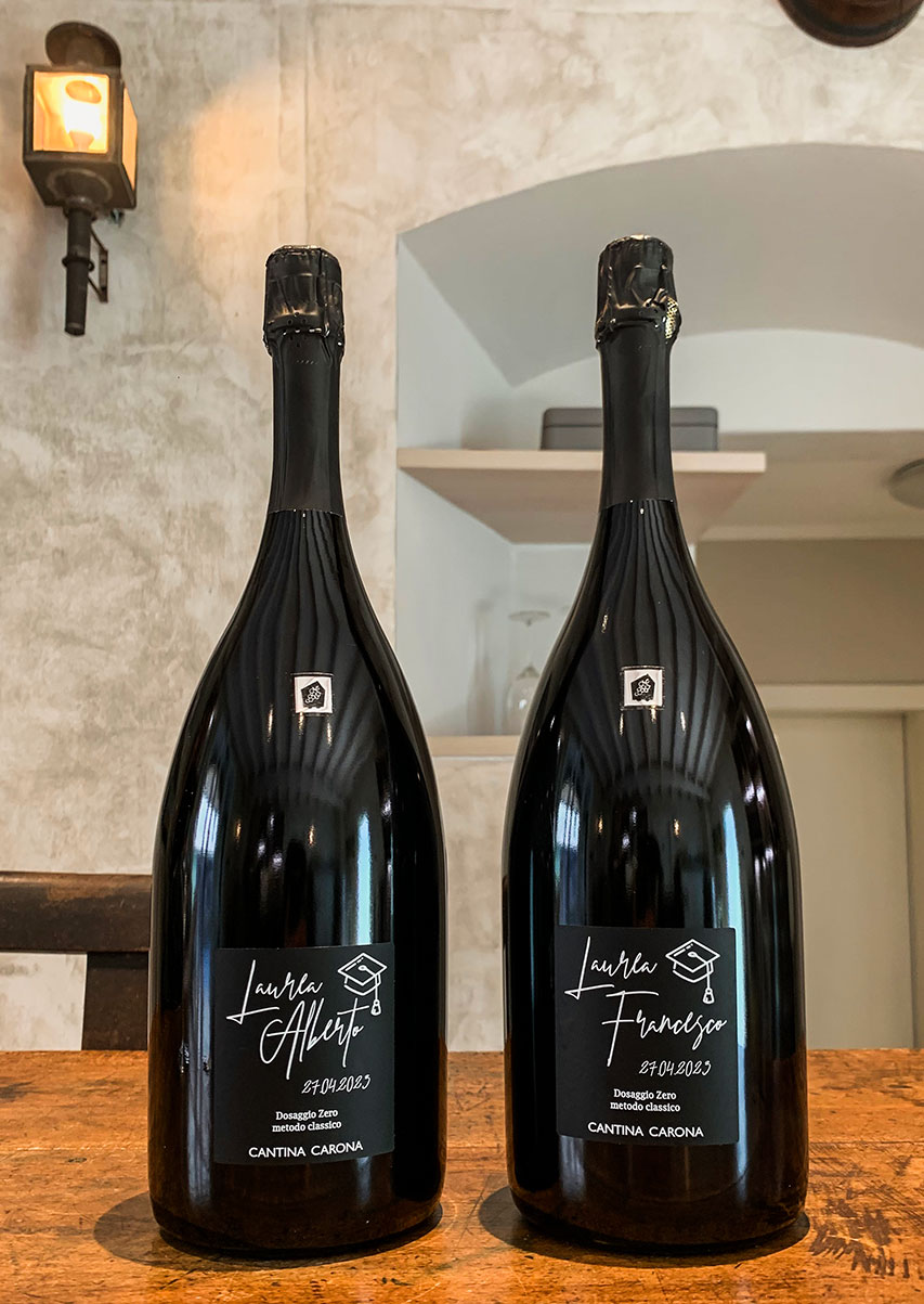 Le tue etichette personalizzate ad hocTrasforma ogni bottiglia in un ricordo unico: etichette personalizzate per i tuoi momenti speciali. Rendiamo indimenticabili le tue occasioni con bottiglie pensate su misura per te. Lauree, compleanni, matrimoni o eventi aziendali: ogni etichetta diventa un dettaglio esclusivo che racconta la tua storia e celebra con stile e qualità i momenti più importanti.